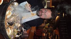Man blir severad levande räkor, musslor och bläckfiskar och tuggar i sig dom mens dom sprattlar och vrider sig. Den mattrenden hade nått Stentorpet igår natt. Vi hade fyra små, platta flundreliknande saker i stekpannan, levande men lättstekta, och jag kunde med avsmak äta en halv.
